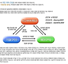 IT스터디 카페에서 IT공부 시작하자! 안녕하세요~^^ KG ITBANK한지호 교육팀장입니다. 오늘은 제가 따로 운영중인 IT스터디 카페를 하나 알려드리려고 합니다^^ 말 그대로 IT공부를 시작할 수 있는 커뮤니티 카페라고 보시면 되요!! 제가 IT전문가 아이디를 사용하며 학생들을 위하여 IT스터디 카페도 운영하고 있습니다^^ 위에 사진보시면 아시겠지만 강의를 올리시는 두분들 모두 고등학교 2학년 학생이랍니다~ IT공부를 굉장히 일찍부터 시작했죠 ㅎㅎ 저희쪽에서 공부하고 있는 학생들도 포토폴리오식으로 게시판도 따로 만들어주고 있습니다. 이런식으로 게시판도 다 있어서 IT공부를 시작하시는데 도움이 될만한 IT스터디 카페이겠죠? ㅎ 카페회원수도 2만명이 넘어 굉장히 활발하게들 활동한답니다~ 별다른 가입승인같은것 없으니 참고해보시면 좋을거에요~ 이.. 더보기 아이티뱅크 국비지원으로 취업을 준비하는 이유 안녕하세요? KG아이티뱅크 컨설턴트 김주표 교육팀장입니다. 오늘은 아이티뱅크 취업반에 대해서 소개하도록 하겠습습니다. 왜 다들 대학에 가려고 노력을할까요? 이 글을 읽고있는 학생이 중,고등학생이라면 ,,, 본인이 공부하고있는 이유에 대해서 생각해보는 시간을 가져봤으면 좋겠어요. 대학에 가는 이유. 목표는 하나입니다. 바로 '취업' 취업을 위해 다들 죽기살기로 노력하고 있는것이 우리나라 현실이죠, 그렇다해도 결론은 좋지 않습니다. 이태백이라는 말 들어보셨나요? 이십대 태반이 백수라는 말인데요. 이태백이라는 말은 현대사회의 현실을 그대로 보여주는 말이에요. 대학을 졸업해도 왜 취업이 안되는지 생각해보셨나요? 많은 학생들을 만나며 그 학생들의 상황을 들어봤습니다. 가장 취업이 안되는 이유중 가장 큰 이유 뚜렷.. 더보기 제 4회 KG아이티뱅크 학점은행제 설명회 안내 안녕하세요 KG아이티뱅크 박연주교육실장입니다~ 오늘은 이번에 KG아이티뱅크에서 진행하는 KG아이티뱅크 학점은행제 설명회에 대해서 간단하게 안내해 드리려고 합니다 학벌적인 부분을 전혀 보지 않는다는, 무관하다는 말은 완전히 옛 말일 뿐이고, 요즘은 학력적인 부분을 따질 수 밖에 없는게 현실인데요~ 아무래도 연봉은 학력에 따라 나눠진다고 보시면 되세요~! 그만큼, 학점은행제에 대해서도 관심을 가지고 계신 분들도 많다보니 학점은행제에 대해서 이번에 KG아이티뱅크 원격평생교육원에서 학점은행제 설명회를 주최하고자 합니다^^ KG아이티뱅크 서울에서만 진행되는게 아니라 KG아이티뱅크 부산점에서도 진행되므로 부산점 근처 KG아이티뱅크 학생들도 참여할 수 있으니 많은 참여 부탁드리겠습니다 주관 : (주)KG아이티뱅크 주.. 더보기 이전 1 ··· 505 506 507 508 509 510 511 ··· 536 다음